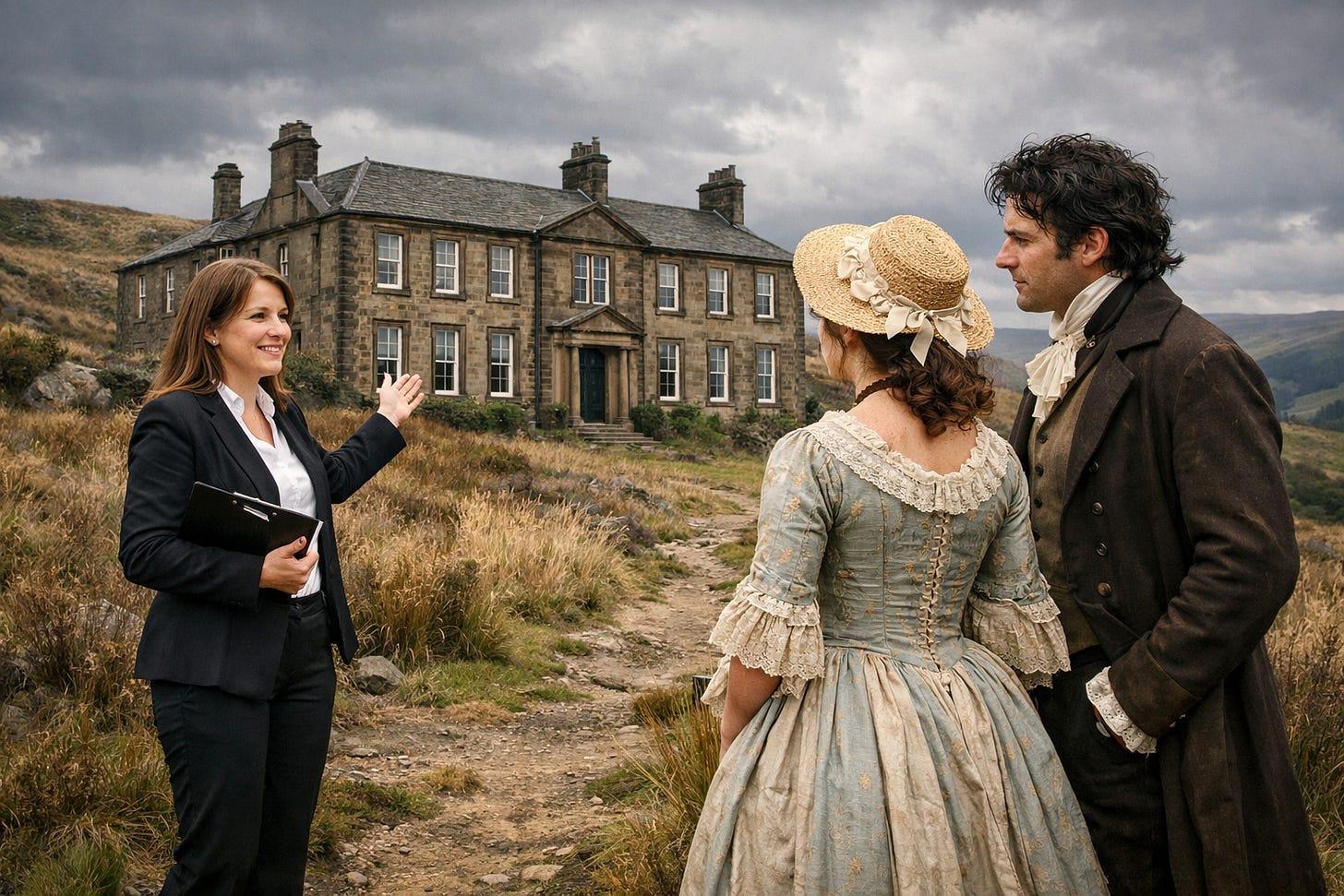 3) Thrushcross Grange, 2026. This immense manor house, a frank homage to the original, retained many of that estate’s best features: There was a magnificent view of the moors, a large stable, demeaning servants’ quarters, and unsettling music piped in throughout the house.